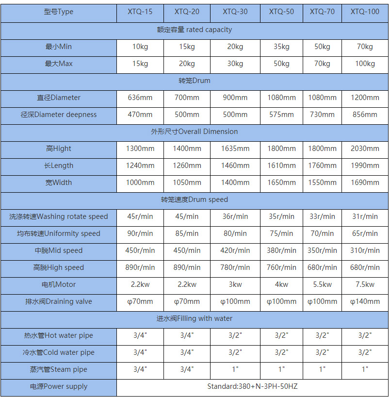 一、全自動洗脫機主要技術參數(shù)(Main Technical specifications)