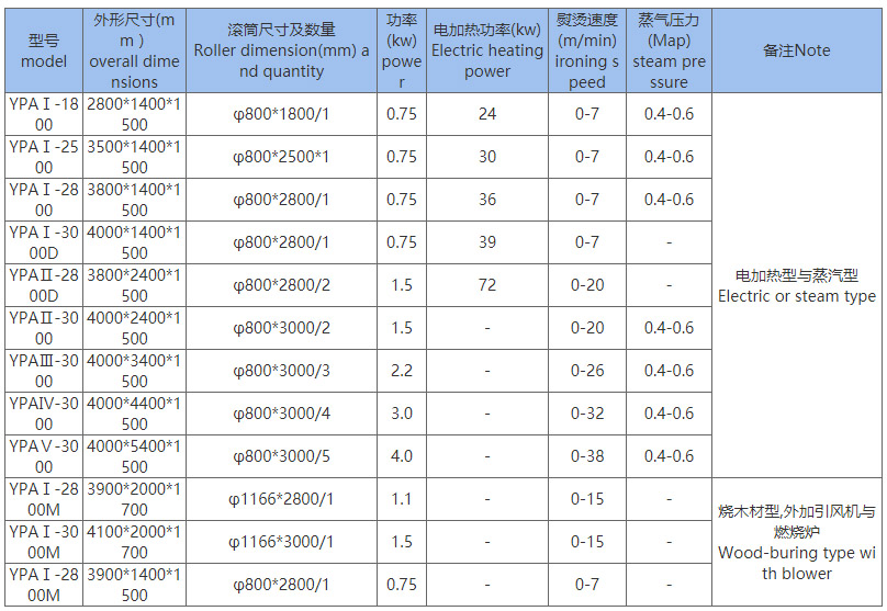 一、燙平機主要技術參數(shù)(Main Technical specifications)