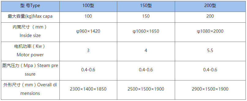 二、氯洗機主要技術參數(Main Technical specifications)